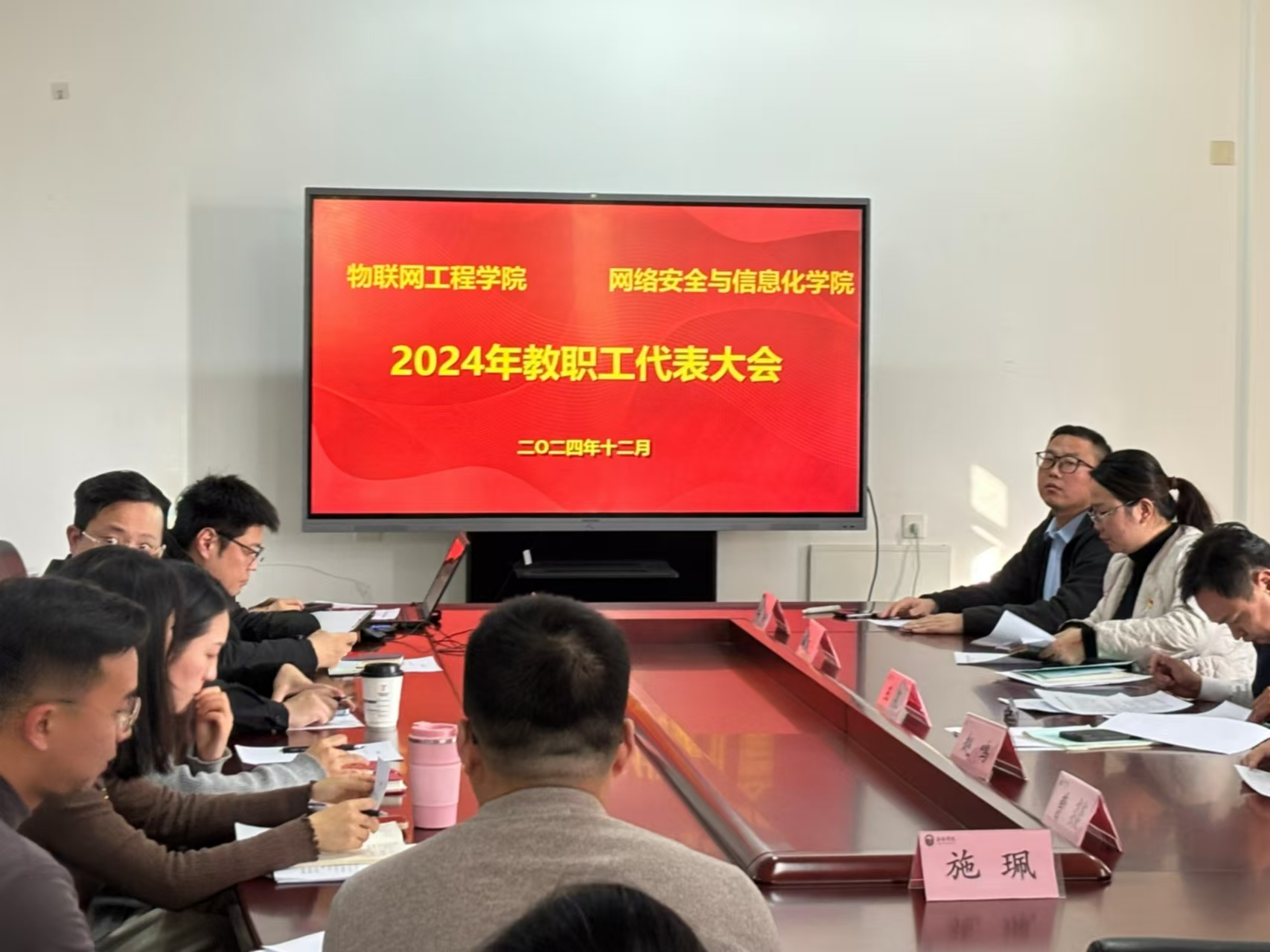 12月16日下午,物联网工程学院(网络安全与信息化学院)2024年教职工代表大会在思源楼305召开。学院院长王泉,党总支副书记臧文佳,分工会主席万一欣以及学院教职工代表参加会议,会议由臧文佳主持。