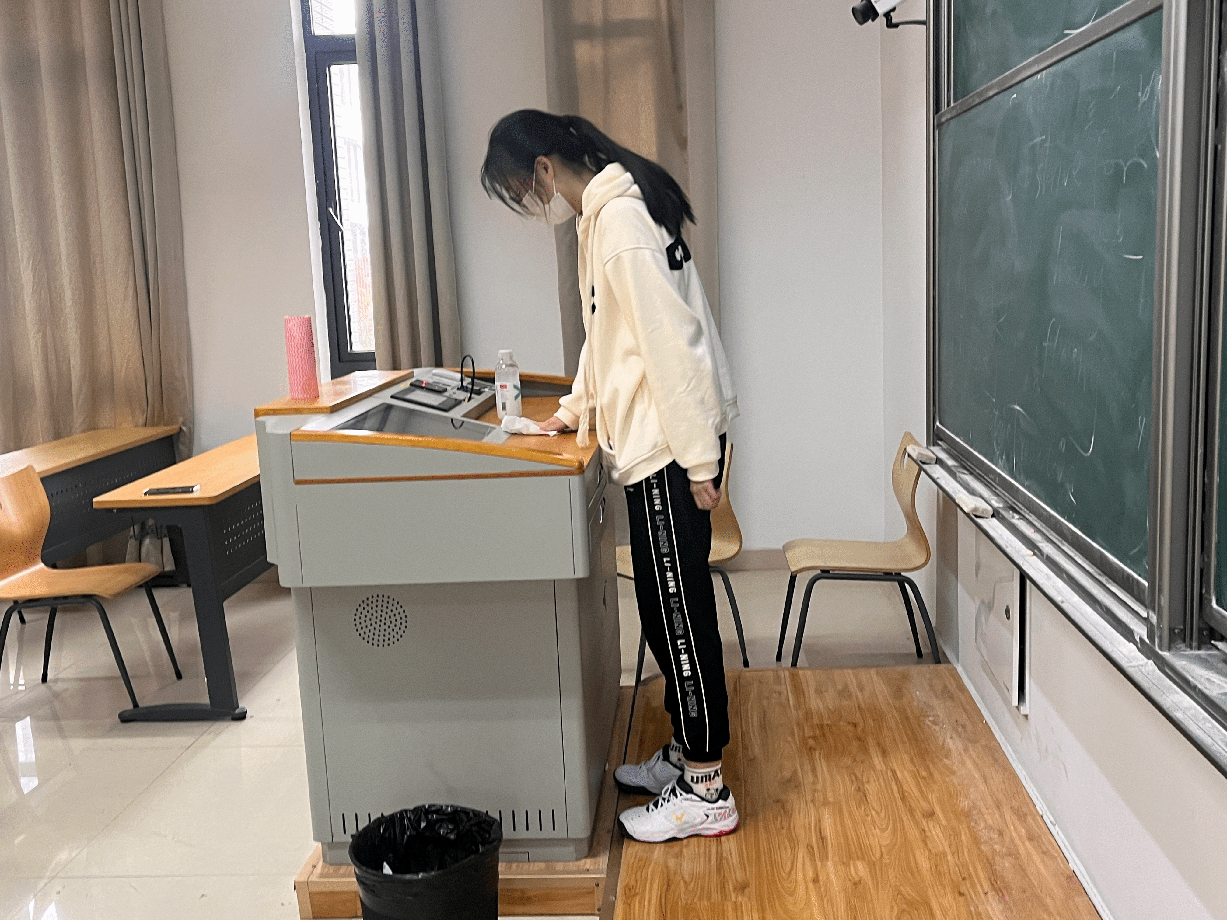 本次活动组织了20、21级学生共计1300余人参加,以班级为单位到指定的任务地点开展劳动。在班委的带领下,同学们拿着劳动工具来到教室、宿舍楼、教学楼等场所,以团队协作的方式,科学有效地分配具体工作任务。最后,在全体同学不惧艰苦的共同努力下,校园环境焕然一新。