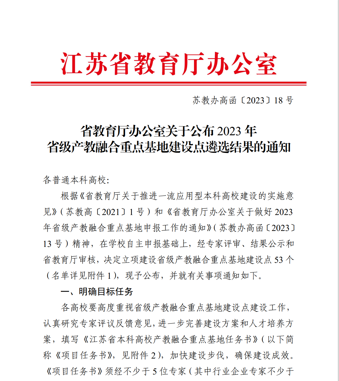 近日,江苏省教育厅办公室公布了关于2023年省级产教融合重点基地建设点遴选结果的通知,我院组织申报的“车联网产教融合重点基地”正式获批。
