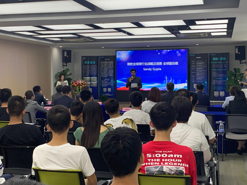 本次庆典活动,邀请到了微软跨行业战略及销售全球副总裁Sandy Gupta(桑迪•古普达)、锡东新城商务区管委会副主任章金伟、微软(中国)有限公司首席策略官戴子珽、伟业轩然教育科技有限公司董事长林波等嘉宾参加。庆典仪式上,章金伟代表锡东新城管委会、Sandy Gupta(桑迪•古普达)分别做了致辞和讲话,表达了对人工智能等新兴战略产业的展望和支持。随后,桑迪•古普达先生为微软MPP认证导师颁发了证书,并与章金伟、戴子珽一起为人工智能加速器一周年庆典点燃生日蜡烛。庆典活动期间,我院师生参观了微软—云暨移动技术孵化计划、无锡人工智能暨智能制造成立一年以来的最新科技成果,如全球首台带平板电脑的智能保险柜、儿童智能山地车、人脸识别防盗锁等第一次展出亮相。庆典仪式后,中国首位微软人工智能认证专家邵宏刚老师为学生们进行一堂生动的人工智能导论分享交流会。