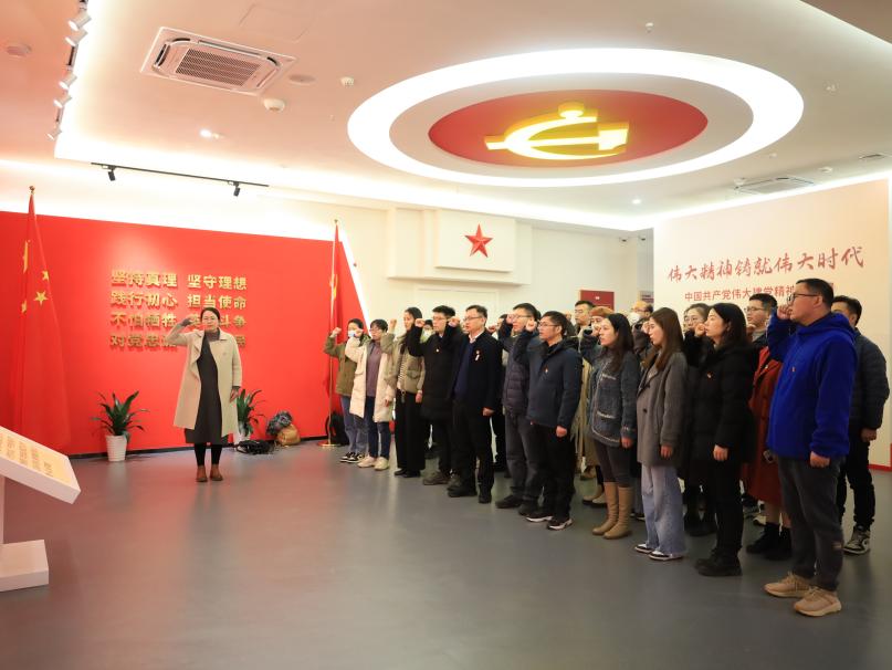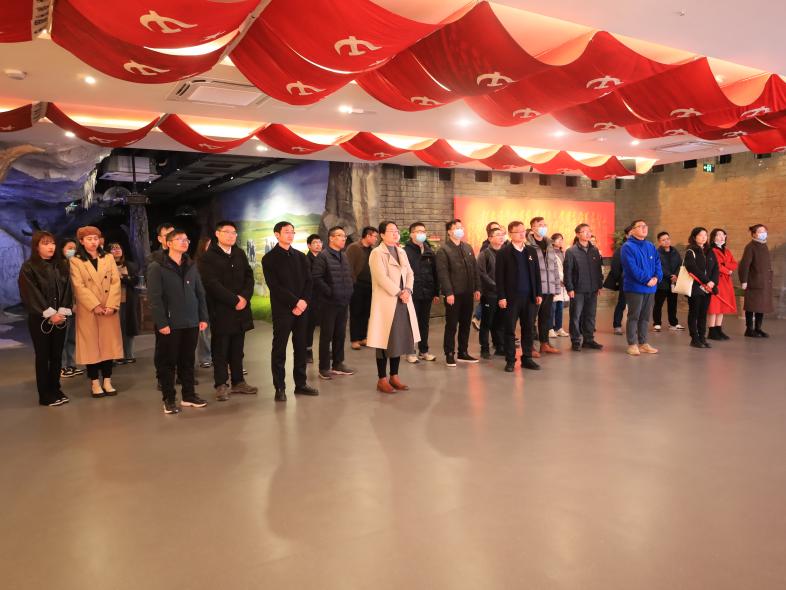 在延安精神展示馆,党员们共同重温了习近平总书记带领中共中央政治局常委瞻仰延安革命纪念地时的重要讲话精神,在珍贵的图文实物、逼真的场景复原、新颖的互动体验中,深刻感悟了延安精神的丰富内涵与时代价值。在现场工作人员的讲解下,全体党员通过一幅幅弥足珍贵的照片、一件件充满历史印记的文物、一段段感人肺腑的故事,感受到延安时期艰苦卓绝的革命历程,领略到延安精神和老一辈革命家的风采。最后全体党员面对鲜红的党旗,重温入党誓词,坚定理想信念,感悟初心使命,汲取前行力量。