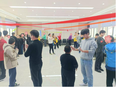 下午1时,志愿者们带着精心准备的牛奶、面包等活动物资准时抵达现场。活动伊始,志愿者们主动与残疾人朋友手拉手、面对面,以亲切的问候拉近距离。在奥尔夫律动音乐的欢快旋律中,志愿者们通过拍手、跺脚等声势动作,耐心引导残疾人朋友跟随节奏律动,对行动不便、听力受损的学员给予一对一贴心协助。现场氛围热烈而温馨,欢快的旋律与阵阵笑声交织,残疾人朋友在轻松的音乐互动中逐渐放开身心,大胆参与,原本的隔阂在音乐的共鸣中悄然消融,残健双方在律动中相知相识,共筑友谊之桥。